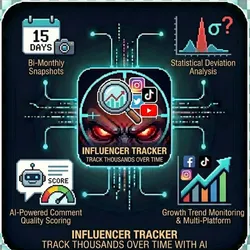 Influencer Tracker monitors Instagram, TikTok, and YouTube influencers at scale, capturing profile metrics over time and detecting suspicious patterns that indicate fake engagement or purchased followers.