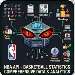 Fetch comprehensive NBA basketball data including teams, players, standings, schedules, game statistics, fantasy projections, & betting odds. 30 NBA Teams, Rosters, Team Statistics, League Standings, Player Statistics, Game Statistics, Schedule, League Leaders, Fantasy Projections, Betting Odds