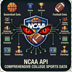 Fetch comprehensive NCAA college sports data including basketball rankings, football standings, team rosters, player statistics, and game schedules for all divisions. Basketball Data & Football Data Teams Rankings Schedule Scores Standings