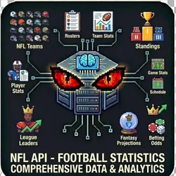 Fetch comprehensive NFL football data including teams, players, standings, schedules, game statistics, fantasy projections, and betting odds. 32 NFL Teams, Team Rosters, Team Statistics, Player Statistics, Game Statistic, Schedule, League Leaders, Fantasy Projections & Betting Odds