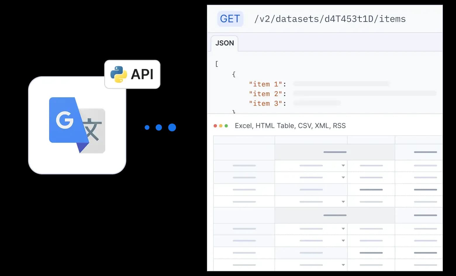 Extract Google Translate data with our Google Translate API Python client. Get programmatic access to auto language detection, wide language support, translates text, structured JSON output, batch processing, and more using simple Python code. Start free, no credit card required.