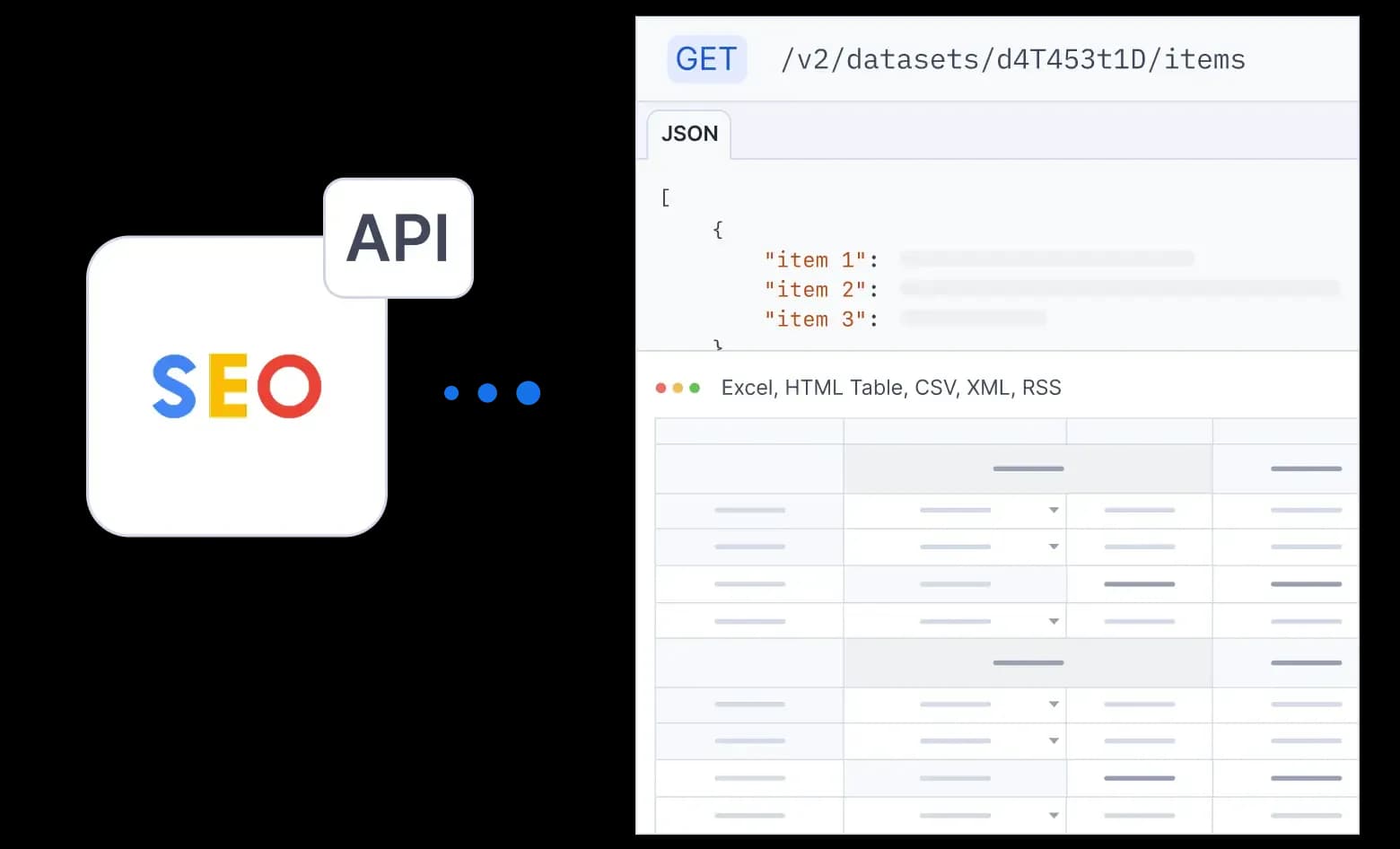 Your datasets can be exported to any format that suits your data workflow, including Excel, CSV, JSON, XML, HTML table, JSONL, and RSS.