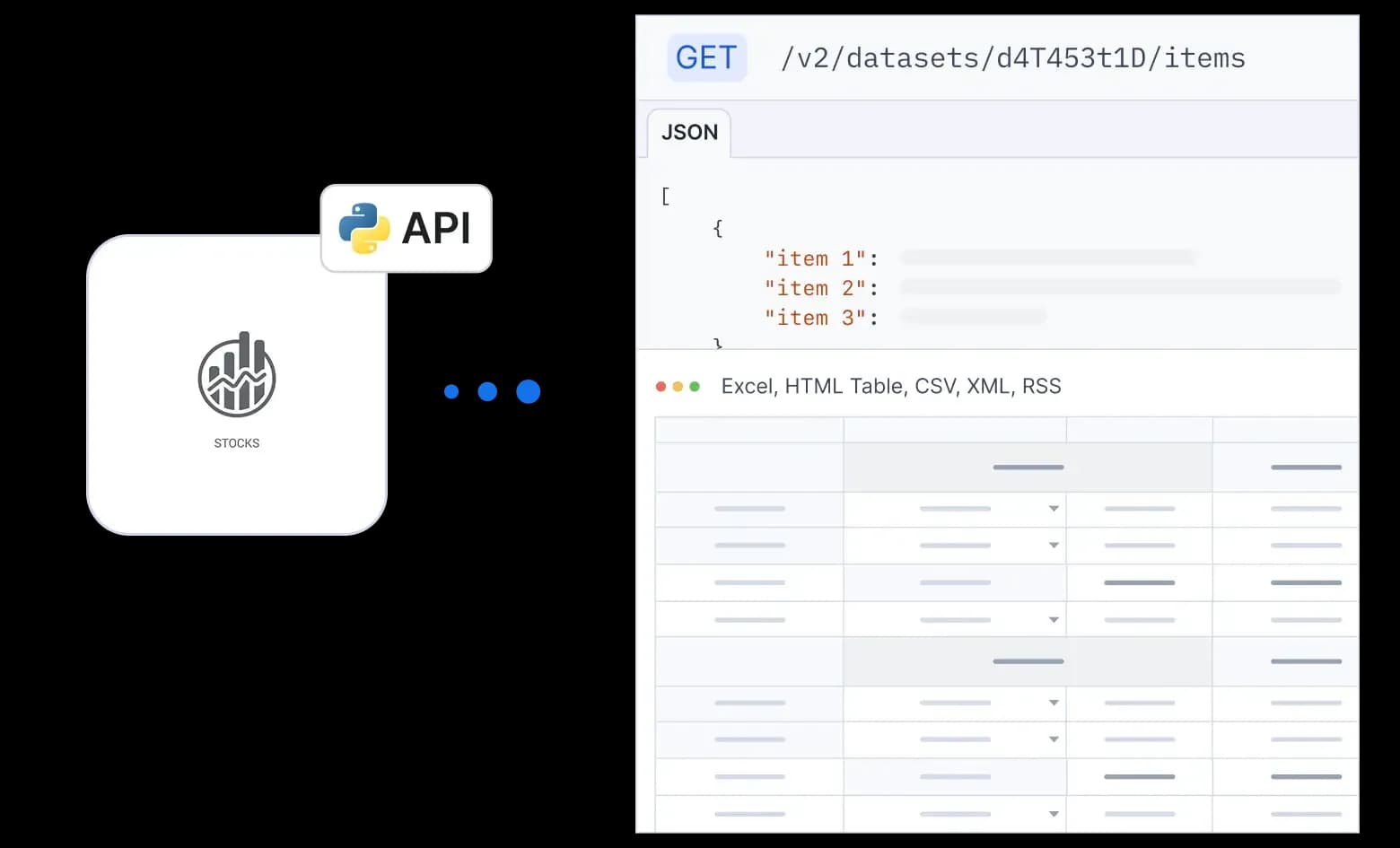The Apify API client for Python is the official library that allows you to use stock price API in Python, providing convenience functions and automatic retries on errors. Get started with simple pip installation and robust error handling built-in.