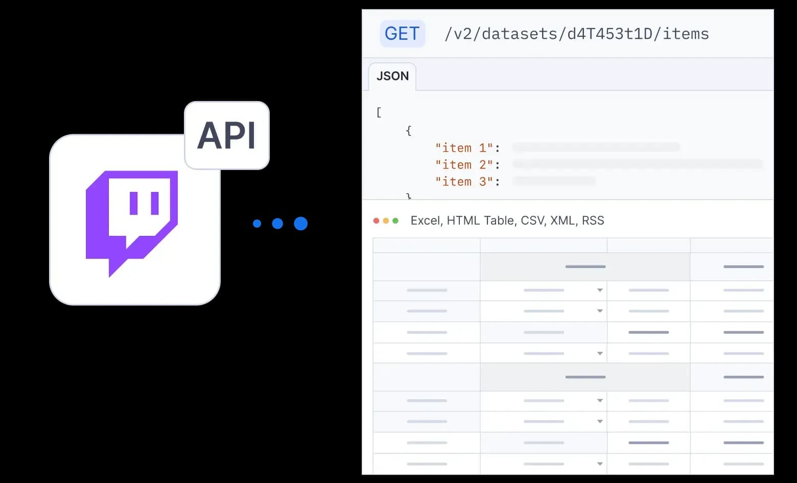 Our Twitch API gives you programmatic access to Twitch data that isn't available through any official API. Get data on channel data, streamer details, live stream information, follower counts, video metrics, and more. And the best part? You can try the Twitch API entirely for free, no credit card required.