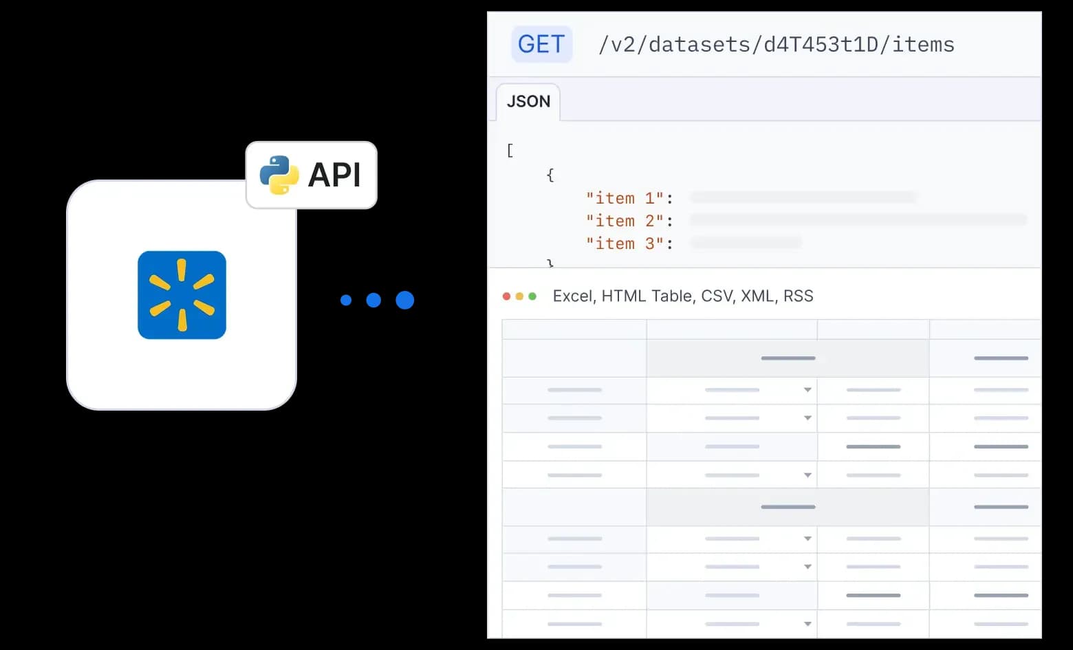 Extract Walmart data with our Walmart API Python client. Get programmatic access to seller information, reviews, brand details, images, prices, product details, and more using simple Python code. Start free, no credit card required.