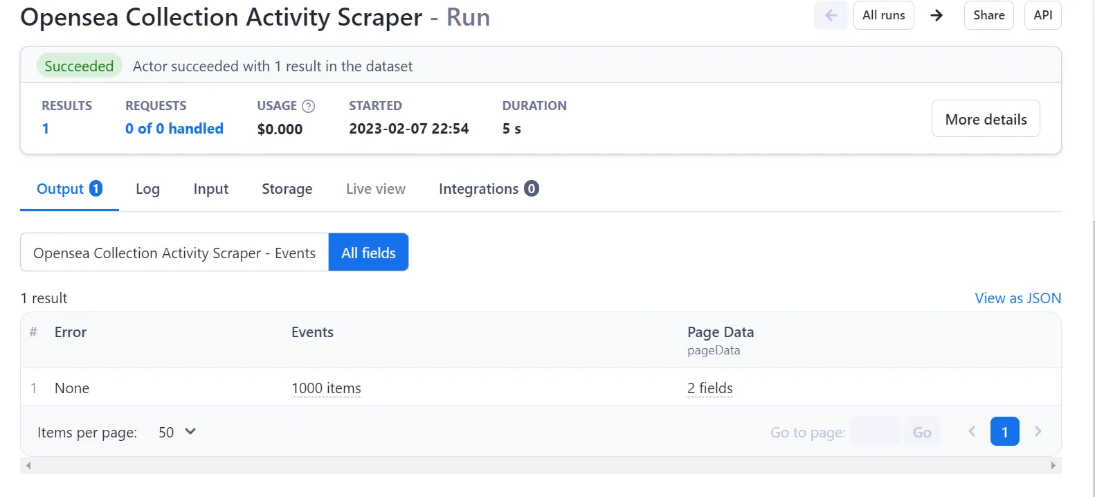 Our Opensea Collection Activity/Events scraper lets you quickly monitor / index events on the Opensea marketplace. This unofficial Opensea API, is super efficient at scraping data for you and costs you near to nothing while being able to fetch you THOUSANDS events in a few seconds. This scraper, fetches all sale, listing, transfer and offer events on an Opensea collection. This is very useful for monitoring trends on collections, and or indexing to create complex datasets for trading or just data analysis in general.