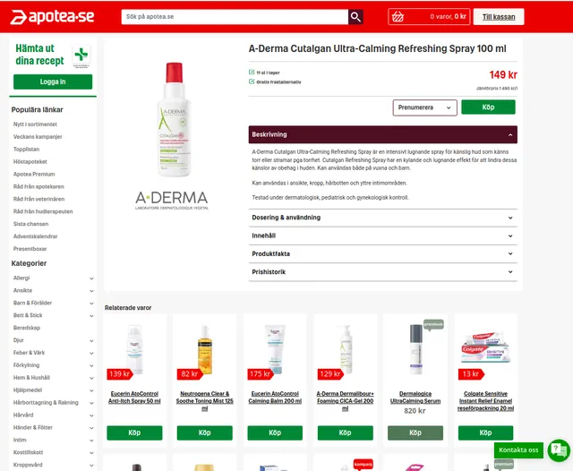 Example url 1: https://www.apotea.se/a-derma-cutalgan-ultra-calming-refreshing-spray-100-ml