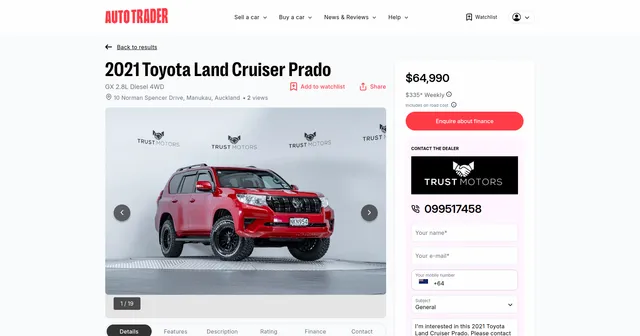 Example url 1: https://autotrader.co.nz/used-cars-for-sale/toyota/landcruiserprado/1205779