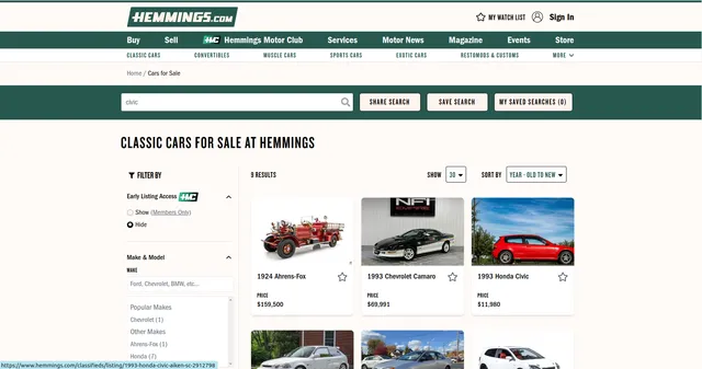 Example url 3: https://www.hemmings.com/classifieds/cars-for-sale?adtype=cars-for-sale&distance=50&q=civic&per_page=30&sort_by=year&order=ASC