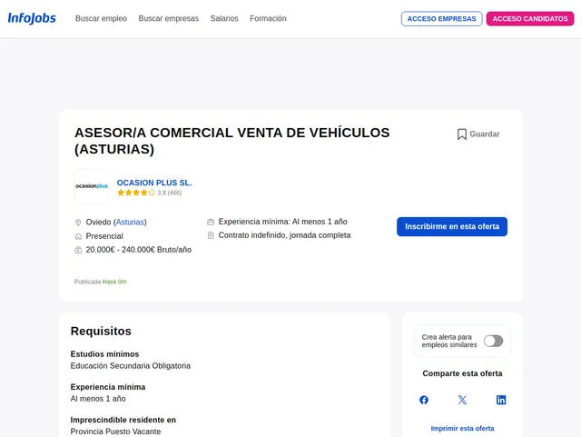 Offer Code (string): Unique identifier for the job posting within InfoJobs.net system