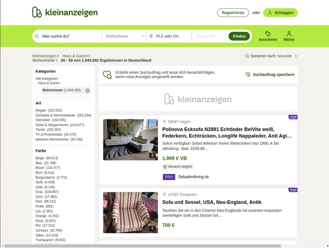 Beispiel-URL 1: https://www.kleinanzeigen.de/s-wohnzimmer/seite:2/c88