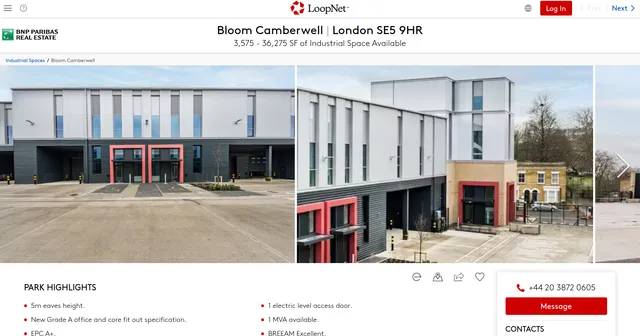 [{"offers": [{"price": "Upon Request","price_currency": "USD","price_specification": {"price": "Upon Request","price_currency": "USD","@type": "PriceSpecification"},"availability": "https://schema.org/InStock","@type": "Offer","name": "Rental Rate ($/SF/YR)"}],"provider": [{"address": {"address_locality": "London","address_region": "LND","@type": "PostalAddress"},"member_of": {"@type": "Organization","name": "BNP"},"@type": "RealEstateAgent","@id": "https://www.loopnet.com/commercial-real-estate-brokers/profile/iolo-morgan/ehcvw2nb/33769868#RealEstateAgent","name": "Iolo Morgan","image": {"@type": "ImageObject","@id": "https://images1.loopnet.com/i2/xRpJIjop6O7AB-j3_FhBgiwHU1et_WFrMgNBkEgSzrg/106/image.jpg#primaryImage","url": "https://images1.loopnet.com/i2/xRpJIjop6O7AB-j3_FhBgiwHU1et_WFrMgNBkEgSzrg/106/image.jpg"}},{"address": {"address_locality": "London","address_region": "LND","@type": "PostalAddress"},"member_of": {"@type": "Organization","name": "BNP"},"@type": "RealEstateAgent","@id": "https://www.loopnet.com/commercial-real-estate-brokers/profile/tessa-english/5f1s7fmb/33769868#RealEstateAgent","name": "Tessa English","image": {"@type": "ImageObject","@id": "https://images1.loopnet.com/i2/RAD3rCrj0bOjlFvqDqYE8Ku9-Bbmw-fdeSW0P5_yVS0/106/image.jpg#primaryImage","url": "https://images1.loopnet.com/i2/RAD3rCrj0bOjlFvqDqYE8Ku9-Bbmw-fdeSW0P5_yVS0/106/image.jpg"}},{"address": {"address_locality": "London","address_region": "LND","@type": "PostalAddress"},"member_of": {"@type": "Organization","name": "BNP"},"@type": "RealEstateAgent","@id": "https://www.loopnet.com/commercial-real-estate-brokers/profile/nick-steens/963wrz4b/33769868#RealEstateAgent","name": "Nick Steens","image": {"@type": "ImageObject","@id": "https://images1.loopnet.com/i2/x7f4UVdSVsw0O9TYtdjtCbFEGDFtzc-FucZoxKqC3I4/106/image.jpg#primaryImage","url": "https://images1.loopnet.com/i2/x7f4UVdSVsw0O9TYtdjtCbFEGDFtzc-FucZoxKqC3I4/106/image.jpg"}},{"address": {"address_locality": "London","address_region": "LND","@type": "PostalAddress"},"member_of": {"@type": "Organization","name": "BNP"},"@type": "RealEstateAgent","@id": "https://www.loopnet.com/commercial-real-estate-brokers/profile/bridget-outtrim/4514xvkb/33769868#RealEstateAgent","name": "Bridget Outtrim","image": {"@type": "ImageObject","@id": "https://images1.loopnet.com/i2/Cf5PRd2kITBfBwRQimf1TG1CoGwaVwFLwYGSVqbOjwc/106/image.jpg#primaryImage","url": "https://images1.loopnet.com/i2/Cf5PRd2kITBfBwRQimf1TG1CoGwaVwFLwYGSVqbOjwc/106/image.jpg"}},{"address": {"address_locality": "London","address_region": "LND","@type": "PostalAddress"},"member_of": {"@type": "Organization","name": "BNP"},"@type": "RealEstateAgent","@id": "https://www.loopnet.com/commercial-real-estate-brokers/profile/annabel-dalby/js59hl7b/33769868#RealEstateAgent","name": "Annabel Dalby","image": {"@type": "ImageObject","@id": "/content/images/user/no-broker-photo.png?v=8a41cc887b28f0c6fd88e1322ee17b08#primaryImage","url": "/content/images/user/no-broker-photo.png?v=8a41cc887b28f0c6fd88e1322ee17b08"}},{"address": {"address_locality": "London","address_region": "LND","@type": "PostalAddress"},"member_of": {"@type": "Organization","name": "BNP"},"@type": "RealEstateAgent","@id": "https://www.loopnet.com/commercial-real-estate-brokers/profile/james-coggle/8g7e461b/33769868#RealEstateAgent","name": "James Coggle","image": {"@type": "ImageObject","@id": "https://images1.loopnet.com/i2/ZjRoR-LcppW1D-La2qcZSNoVud6gOzVaKUHIHOHJ8CA/106/image.jpg#primaryImage","url": "https://images1.loopnet.com/i2/ZjRoR-LcppW1D-La2qcZSNoVud6gOzVaKUHIHOHJ8CA/106/image.jpg"}},{"address": {"address_locality": "London","address_region": "LND","@type": "PostalAddress"},"member_of": {"@type": "Organization","name": "BNP"},"@type": "RealEstateAgent","@id": "https://www.loopnet.com/commercial-real-estate-brokers/profile/peter-davidson/q71jm4yb/33769868#RealEstateAgent","name": "Peter Davidson","image": {"@type": "ImageObject","@id": "https://images1.loopnet.com/i2/w9rxcUDd3YvLkDq66ohEX7pVMKlEEo2dMX87DxbCDTE/106/image.jpg#primaryImage","url": "https://images1.loopnet.com/i2/w9rxcUDd3YvLkDq66ohEX7pVMKlEEo2dMX87DxbCDTE/106/image.jpg"}}],"date_modified": "2026-01-05","content_location": {"same_as": [],"address": {"address_country": "GB","address_locality": "London","postal_code": "SE5 9HR","street_address": "Lilford Rd","@type": "PostalAddress","@id": "https://www.loopnet.com/place/London-SE5 9HR/#place"},"@type": "Place"},"is_part_of": [{"@type": "CollectionPage","@id": "https://www.loopnet.com/search/industrial-space/united-kingdom/for-lease/#CollectionPage"}],"context": null,"type": null,"id": null,"name": "Bloom Camberwell | London SE5 9HR - 3,575 - 36,275 SF of Industrial Space Available","description": "Laid out over two parallel terraces with an open central courtyard, Bloom Camberwell is a new, cutting-edge industrial site with units fitted out to the highest specification while offering businesses a prime location in South London. This best-in-class development comprises eight purpose-built warehouse units totaling 52,495 square feet, with units ranging from 3,575 to 10,030 square feet.","url": "https://www.loopnet.com/Listing/Lilford-Rd-London/33769868/","image": "https://images1.loopnet.com/i2/80pJZ6YDgLmBAKBWUJBTvtW2NuLkGK_klQaRF__bOAQ/112/image.jpg","additional_property": [{"value": ["36,275 SF"],"@type": "PropertyValue","name": "Total Space Available"},{"value": ["10,170 SF"],"@type": "PropertyValue","name": "Max. Contiguous"},{"value": ["Industrial Park"],"@type": "PropertyValue","name": "Park Type"}]}]