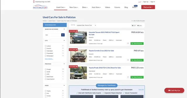 https://www.pakwheels.com/used-cars/search/-/?q=suv(SUVs),?q=sedan(Sedans) - Location-Based: