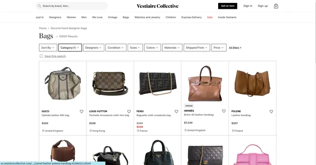 Example url 1: https://us.vestiairecollective.com/women-bags/p-2/#categoryParent=Bags%235_gender=Women%231