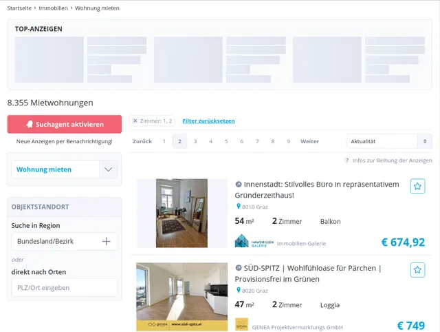 Identify Target Properties: Visit willhaben.at and use the search interface to find properties matching your criteria. Apply filters for location, property type, price range, and room count.