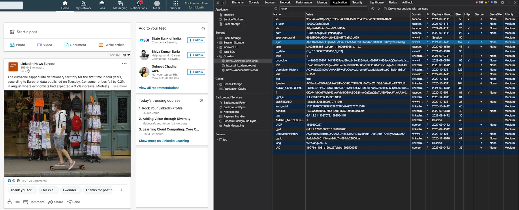Application, then from left panel selectStorage->Cookies->https://www.linkedin.com. In the main view locate row with nameli_atand copy content from the columnValue.