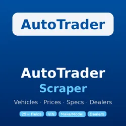 Scrape AutoTrader for vehicle listings with prices, VIN, dealer info, mileage, MPG, specs and 25+ data fields.