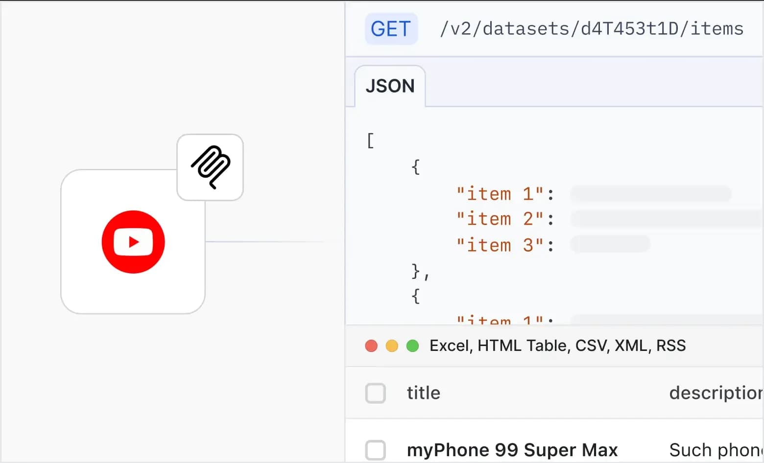 Download scraped data in JSON, CSV, Excel, or HTML formats and integrate with 20+ platforms including Zapier, Make, Slack, and Google Drive via API endpoints.