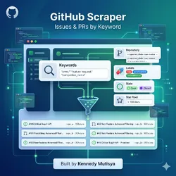 Searches this actor is built for: GitHub scraper, scrape GitHub issues, GitHub issue tracker, GitHub PR monitor, GitHub API alternative, GitHub keyword alert, track GitHub issues, competitor GitHub monitor, GitHub lead generation.