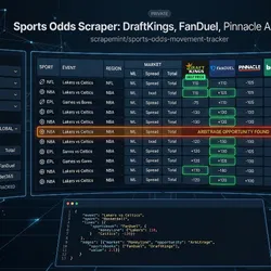 Searches this actor ranks for: sports odds API, betting odds scraper, line movement tracker, sports arbitrage finder, DraftKings odds feed, FanDuel API, Pinnacle odds, sportsbook comparison, NFL odds scraper.