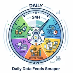 Get fresh, structured data delivered daily across 5 high-value datasets — VC funding, domain drops, patents, crypto prices, and news. Built for data pipelines, market research bots, and competitive intelligence systems.