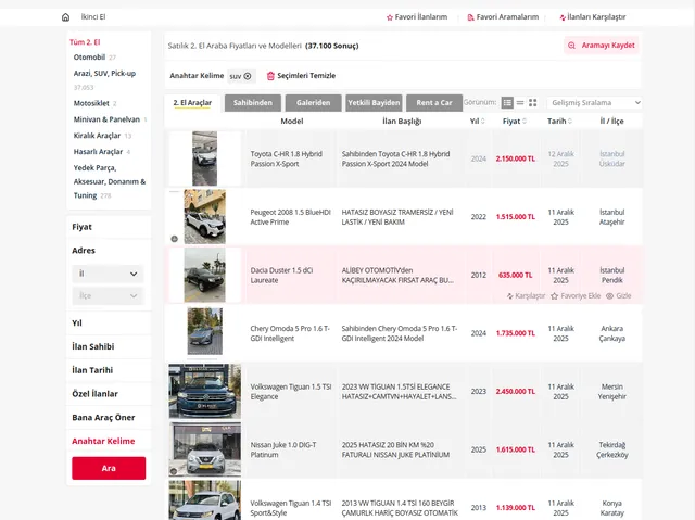 Arabam.com dominates Turkey's online used car marketplace, hosting thousands of daily listings from dealers and private sellers. The platform provides detailed vehicle information, pricing data, and seller verification that makes it essential for understanding Turkish automotive market dynamics.