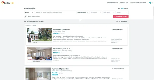 Bienici.com is a major French real estate platform aggregating property listings from agencies and private sellers across France. The platform provides detailed property information including energy performance diagnostics (DPE), mandatory in France, making it valuable for analyzing energy-efficient properties and compliance trends.