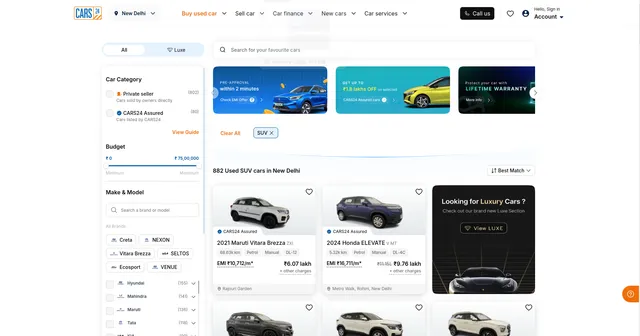 Cars24.com revolutionized India's used car market by providing transparent pricing, standardized quality checks, and streamlined buying experiences. The platform lists thousands of certified pre-owned vehicles with detailed specifications, inspection reports, and competitive pricing—making it a goldmine for automotive data intelligence.