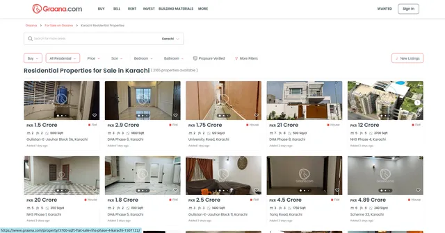 The scraper processes Graana search result URLs—pages displaying multiple properties after applying filters. Understanding URL parameters ensures you target the right data.