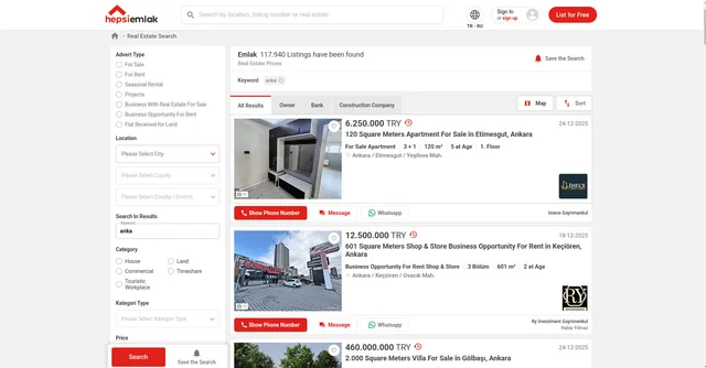 Hepsiemlak.com ranks among Turkey's leading real estate platforms, connecting buyers, sellers, and renters across Turkish cities from Istanbul to Ankara. The platform aggregates residential and commercial properties, vacation rentals, and land listings with detailed specifications that drive investment decisions.