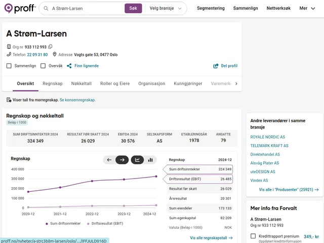 Proff.no serves as Norway's most comprehensive business information portal, providing detailed data on Norwegian companies, their finances, leadership, and operations. The platform aggregates information from official registries, financial reports, and public records, making it the go-to resource for B2B intelligence in Norway.
