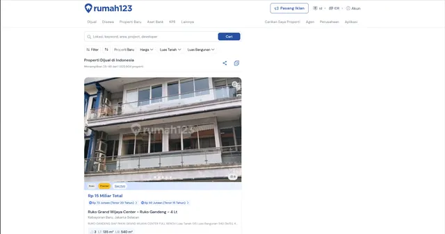 Rumah123.com is Indonesia's premier online property marketplace, connecting buyers, sellers, and renters across the archipelago. As part of PropertyGuru Group, it dominates the Indonesian real estate digital landscape with millions of listings spanning residential, commercial, and investment properties.