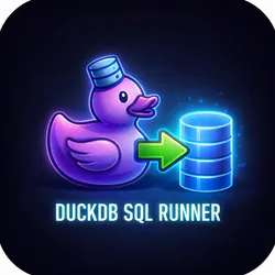 Run SQL queries on CSV, JSON, and Parquet files using DuckDB. No database setup required. Upload files, provide URLs, or query Apify Datasets directly. Full SQL support: JOINs, aggregations, window functions. Export as JSON, CSV, or Parquet. Lightning-fast analytical queries.