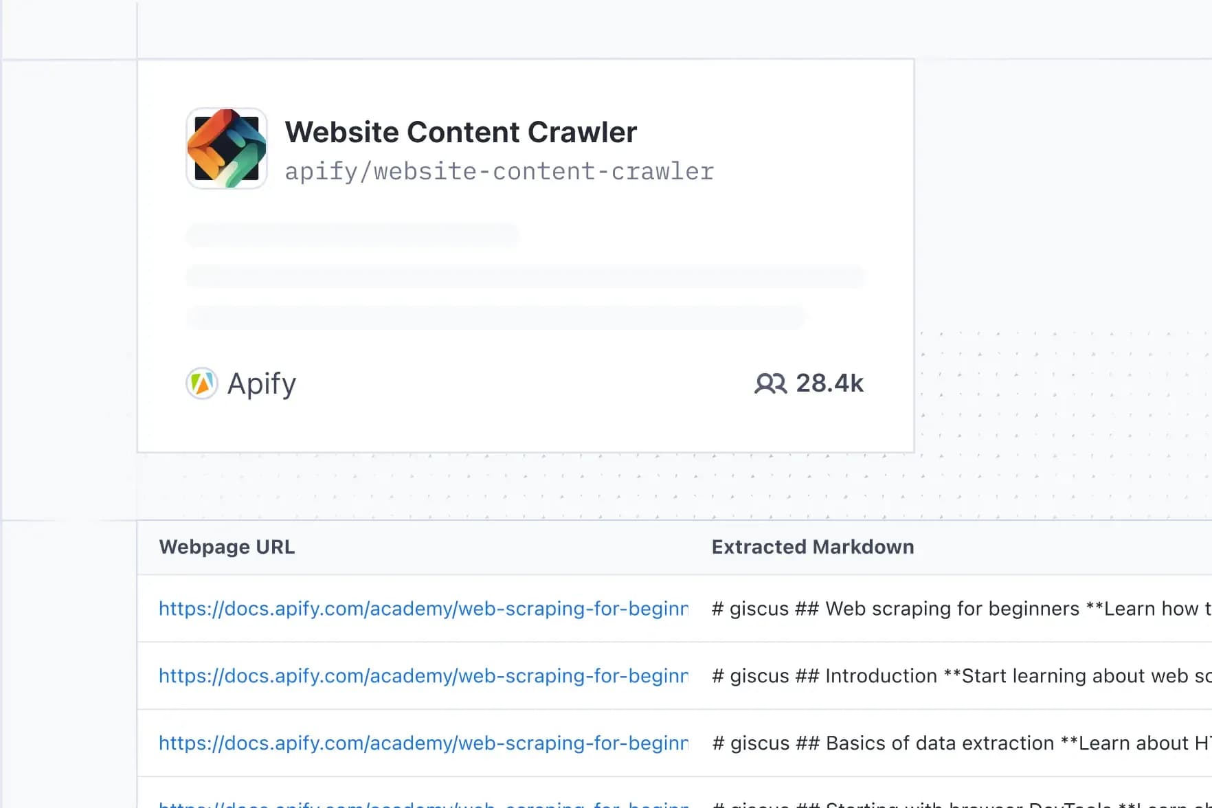 Apify's Website Content Crawler transforms web content into Markdown files optimized for human readability and LLM processing. It removes unnecessary elements like headers, navigation bars, and cookie banners, leaving only the content that matters.